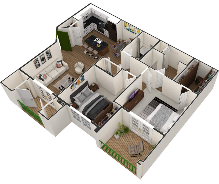 Open Floor Plan & Kitchen Island, Slab Quartz Kitchen & Bathroom Counters, Contemporary Framed Overlay Cabinetry with 36” Uppers, Designer Kitchen & Bathroom Lighting, Contemporary Flooring, Double Master Sinks, Brushed Nickel Kitchen & Bath Fixtures (oil-rubbed bronze fixtures on selected units), Walk-in Closet, Laundry Room (washer & dryer optional), Gas Fireplace (on selected units), Patio or Deck & Storage.